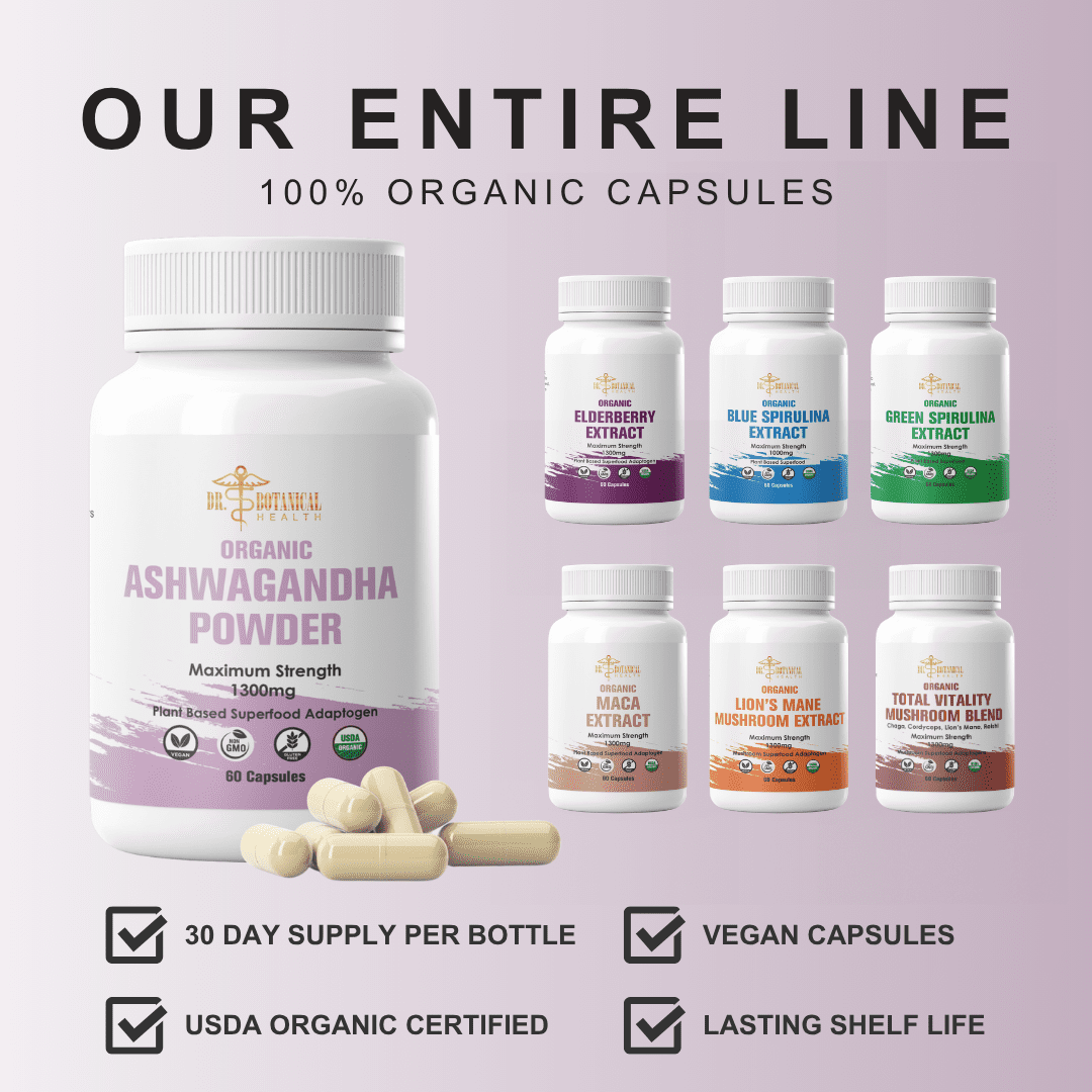 Discover the power of pure, USDA Certified Organic Ashwagandha Capsules! Grown organically and sustainably, our ashwagandha capsules are free from fillers and vegan friendly. Experience the natural power of organic ashwagandha and give your body the support it needs. Each bottle contains a 30 day supply of USDA Organic Ashwagandha capsules. They are the perfect way to enjoy the benefits of ashwagandha in a convenient capsule.
